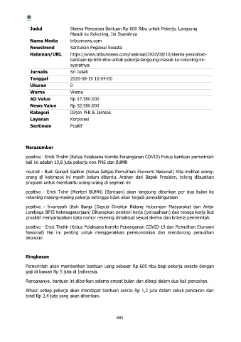 positive - Erick Tohir (Menteri BUMN) (Bantuan) akan langsung diberikan per dua bulan ke