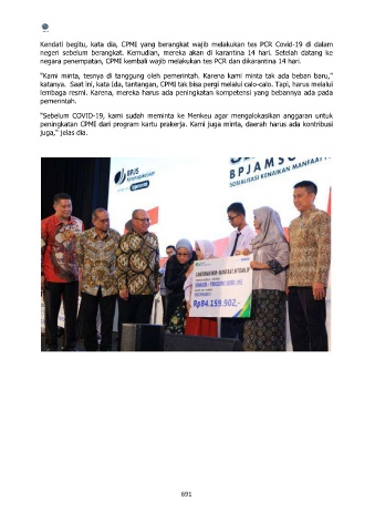 negara penempatan, CPMI kembali wajib melakukan tes PCR dan dikarantina 14 hari.