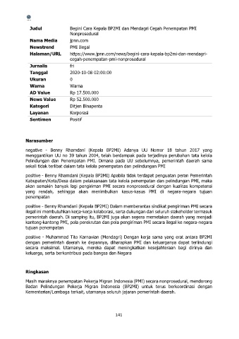 positive - Benny Rhamdani (Kepala BP2MI) Dalam memberantas sindikat pengiriman PMI secara