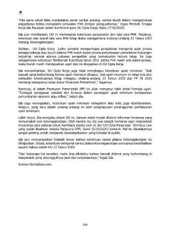 Ida pun menyampaikan tidaklah benar bahwa ketentuan sanksi pidana Ketenagakerjaan itu