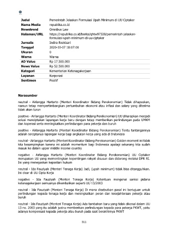 negative - Airlangga Hartarto (Menteri Koordinator Bidang Perekonomian) UU Ciptaker