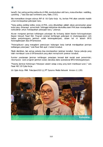 benefit. Dan paling penting ketika dia di-PHK, membutuhkan skill baru, maka diberikan reskilling,