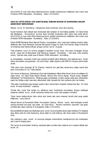 JIKA UU CIPTA KERJA TAK DIBATALKAN, RIBUAN BURUH DI SUMEDANG ANCAM