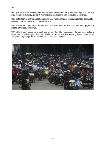 Menurutnya, UU Cipta Kerja bukan hanya cacat secara materi atau substansi tetapi juga cacat