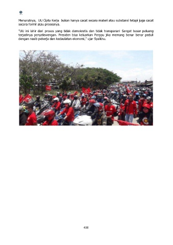 Menurutnya, UU Cipta Kerja bukan hanya cacat secara materi atau substansi tetapi juga cacat