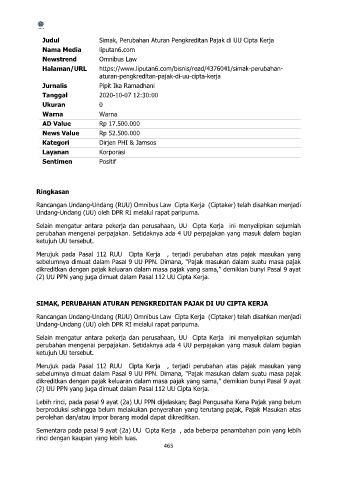Judul Simak, Perubahan Aturan Pengkreditan Pajak di UU Cipta Kerja
