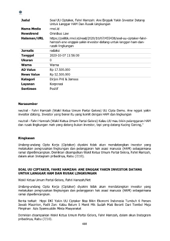 Halaman/URL https://politik.rmol.id/read/2020/10/07/455438/soal-uu-ciptaker-fahri-