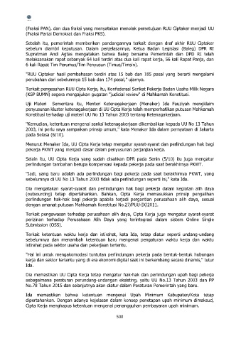 penyusunan kluster ketenagakerjaan di UU Cipta Kerja telah memperhatikan putusan Mahkamah