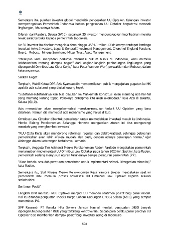 Sementara itu. puluhan investor global mengkritik pengesahan UU Ciptaker. Kalangan investor