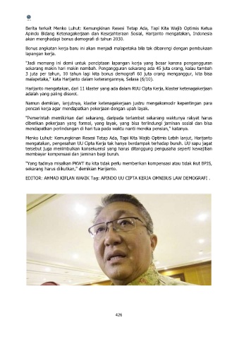 EDITOR: AHMAD KIFLAN WAKIK Tag: APINDO UU CIPTA KERJA OMNIBUS LAW DEMOGRAFI .