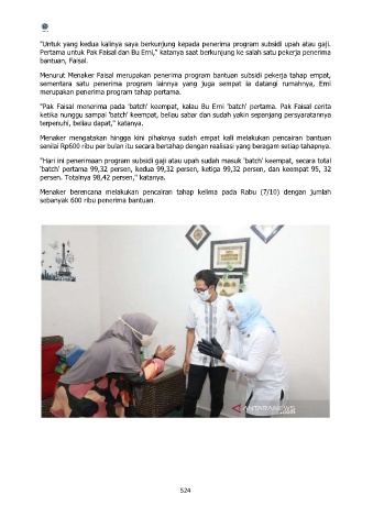 "Untuk yang kedua kalinya saya berkunjung kepada penerima program subsidi upah atau gaji.