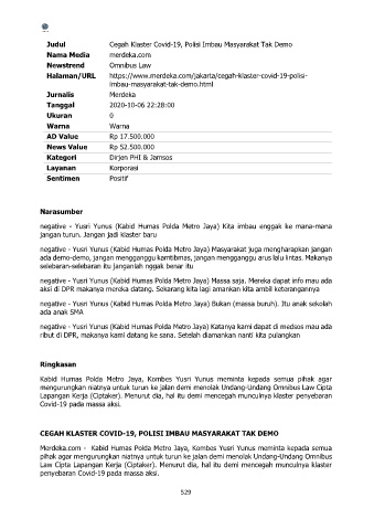 negative - Yusri Yunus (Kabid Humas Polda Metro Jaya) Masyarakat juga mengharapkan jangan