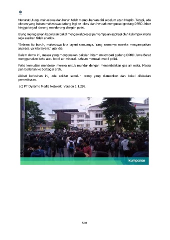 Menurut Ulung, mahasiswa dan buruh telah membubarkan diri sebelum azan Magrib. Tetapi, ada