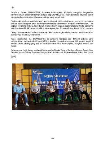 dan Sosialisasi PP 49 Tahun 2020 BPJS Ketenagakerjaan Surabaya Raya, Selasa (6/10) kemarin.