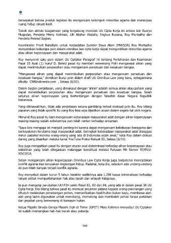 menyatakan beberapa poin dalam omnibus law cipta kerja dapat mengerdilkan minoritas agama