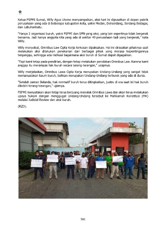 FSPMI menyatakan akan tetap terus berjuang menolak Omnibus Lawa dan akan terus melakukan