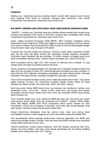 asing langsung (FDI) masuk ke Indonesia. Ujungnya akan memberikan lebih banyak