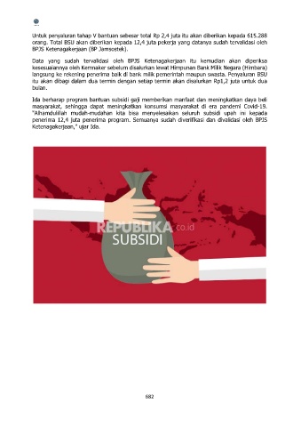 orang. Total BSU akan diberikan kepada 12,4 juta pekerja yang datanya sudah tervalidasi oleh