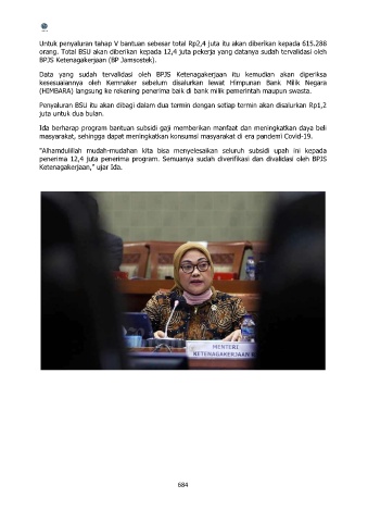 orang. Total BSU akan diberikan kepada 12,4 juta pekerja yang datanya sudah tervalidasi oleh