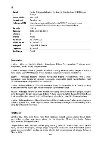 Judul Menko Airlangga Beberkan Manfaat UU Ciptaker bagi UMKM hingga