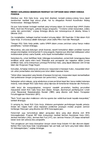 Cipta Kerja. Di antaranya adalah dukungan untuk Usaha Mikro Kecil dan Menengah.