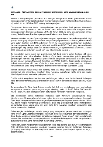 Konstitusi atas uji materi UU No 13 Tahun 2003. Kemudian, ketentuan mengenai sanksi
