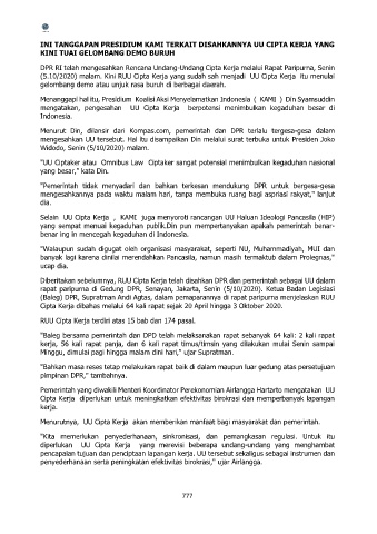 (5.10/2020) malam. Kini RUU Cipta Kerja yang sudah sah menjadi UU Cipta Kerja itu menulai