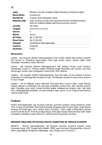 positive - Ida Fauziyah (Menteri Ketenagakerjaan) Kita fasilitasi mereka untuk menjual,