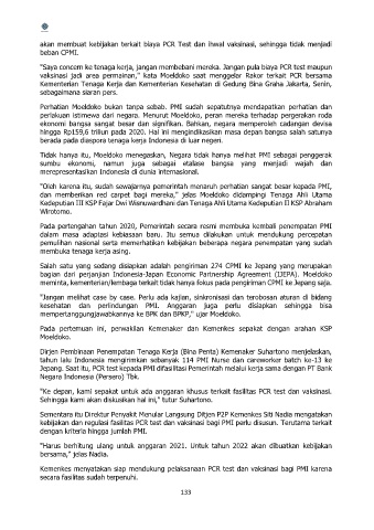 Jepang. Saat itu, PCR test kepada PMI difasilitasi Pemerintah melalui kerja sama dengan PT Bank