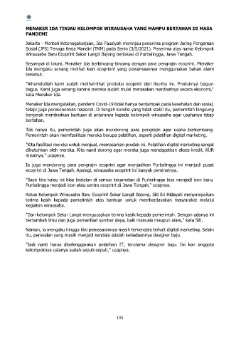 MENAKER IDA TINJAU KELOMPOK WIRAUSAHA YANG MAMPU BERTAHAN DI MASA