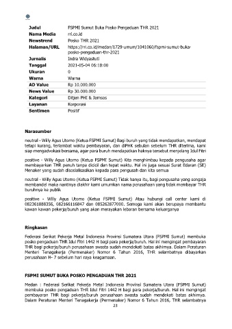Judul FSPMI Sumut Buka Posko Pengaduan THR 2021