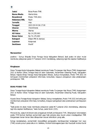 positive - Suhup (Kepala Dinas Tenaga Kerja Kabupaten Bekasi) Jadi posko ini akan mulai