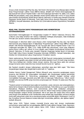 hubungan kerja. Bahkan sepanjang pandemi Covid-19, Telkom tetap mampu tumbuh positif baik