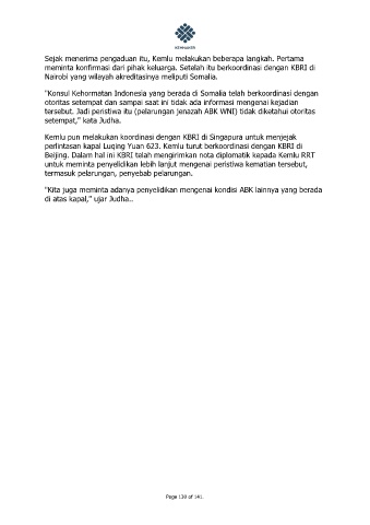 "Konsul Kehormatan Indonesia yang berada di Somalia telah berkoordinasi dengan