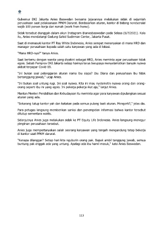Selanjutnya Anies juga melakukan sidak ke PT Equity Life Indonesia. Anies langsung menegur