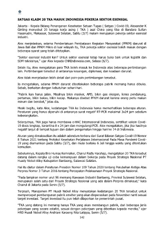 SATGAS KLAIM 20 TKA MASUK INDONESIA PEKERJA SEKTOR ESENSIAL