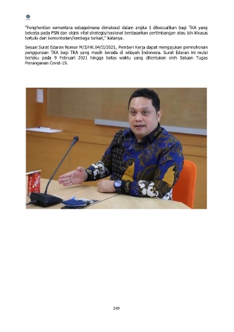 "Penghentian sementara sebagaimana dimaksud dalam angka 1 dikecualikan bagi TKA yang
