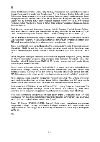 TKA didatangkan investor sesuai izin dan ketentuan/prosedur protokol kesehatan," tambah dia.