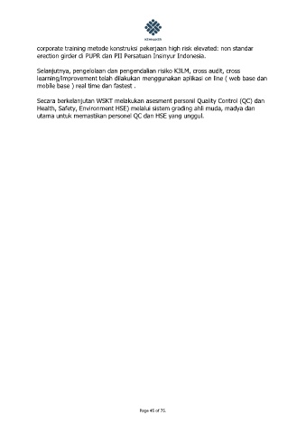 Secara berkelanjutan WSKT melakukan asesment personil Quality Control (QC) dan