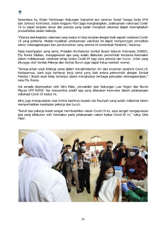 apa yang dilakukan oleh Kemnaker pada pelaksanaan vaksin kedua Covid-19 ini," tutup Idris