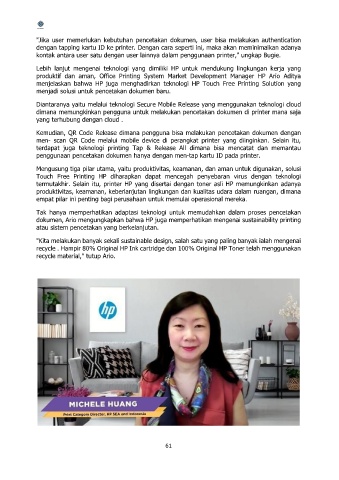 dokumen, Ario mengungkapkan bahwa HP juga memperhatikan mengenai sustainability printing
