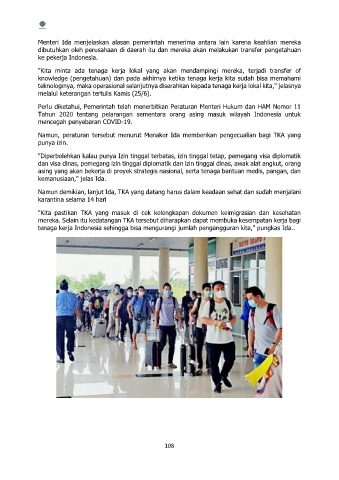 Namun, peraturan tersebut menurut Menaker Ida memberikan pengecualian bagi TKA yang