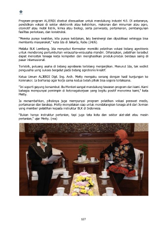 Melalui BLK Lembang, Ida menyebut Kemnaker memiliki pelatihan vokasi bidang agrobisnis