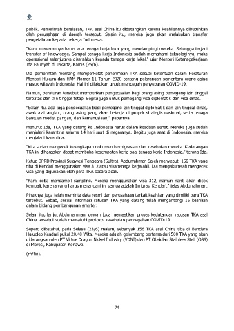 publik. Pemerintah beralasan, TKA asal China itu didatangkan karena keahliannya dibutuhkan