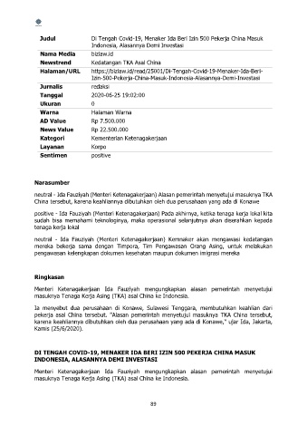 positive - Ida Fauziyah (Menteri Ketenagakerjaan) Pada akhirnya, ketika tenaga kerja lokal kita