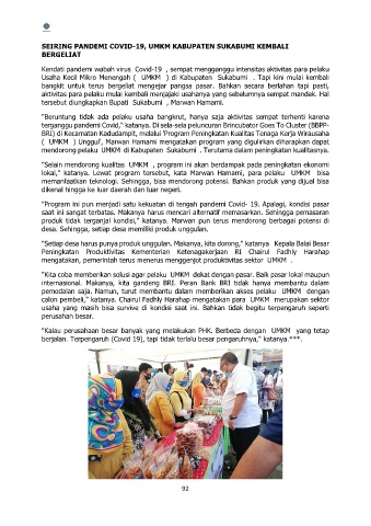 SEIRING PANDEMI COVID-19, UMKM KABUPATEN SUKABUMI KEMBALI