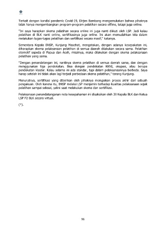 "Ini saya harapkan skema pelatihan secara online ini juga nanti diikuti oleh LSP. Jadi kalau