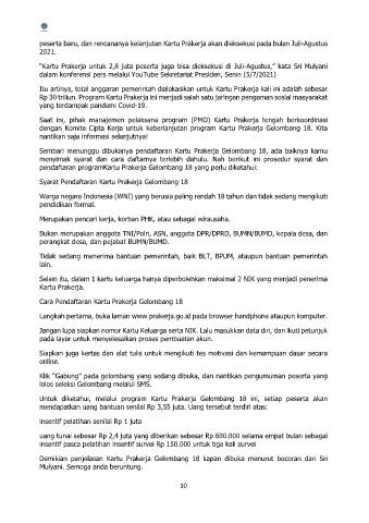 peserta baru, dan rencananya kelanjutan Kartu Prakerja akan dieksekusi pada bulan Juli-Agustus
