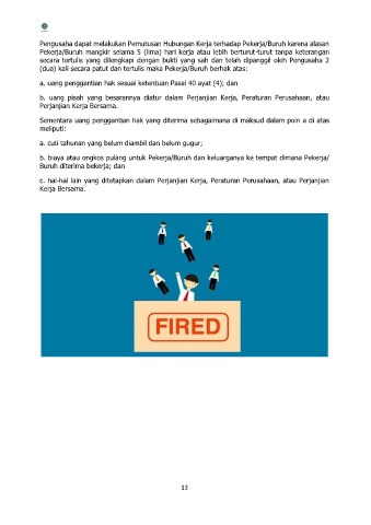 Pengusaha dapat melakukan Pemutusan Hubungan Kerja terhadap Pekerja/Buruh karena alasan