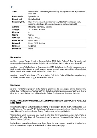 negative - Louisa Tuhatu (Head of Communication PMO Kartu Prakerja) Nanti ketika gelombang